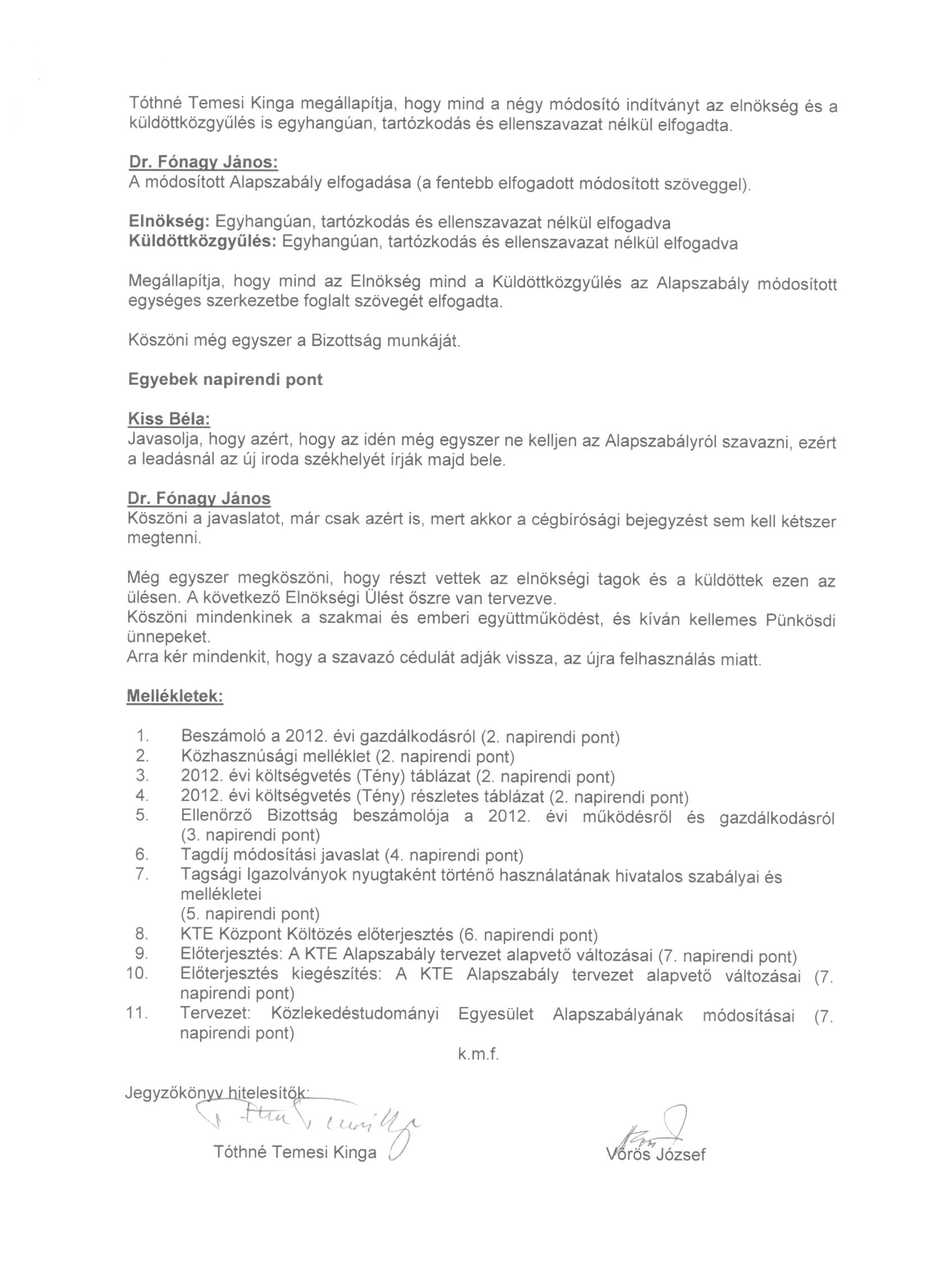 - Jegyzőkönyv a 2012. május 24-i Küldöttközgyűlésről